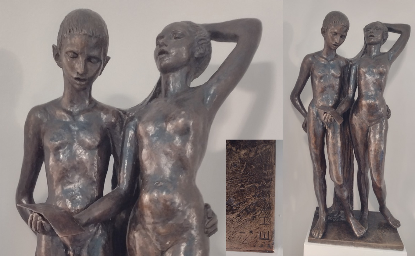 Die eigentlich für einen Brunnen bestimmte Plastik besteht aus zwei Figuren auf einem Sockel, der